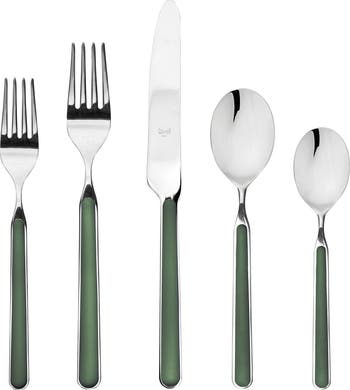 The Fantasia Collection from Mepra is the perfect combination of color and sophistication. Elevate your dining experience with our Italian-crafted flatware, skillfully made from top-tier 18/10 stainless steel and resilient Nylon-Fiberglass resin. Timeless in design, these pieces feature a colorful and elegant form. With a seamless construction, the Stainless Steel body extends to the handle's end, ensuring durability. The knives are enhanced with double serration for enduring sharpness and the entire set is dishwasher safe and backed by a lifetime warranty on the handle. Discover a perfect balance of aesthetics and functionality that's not only long-lasting but also food-safe and stylish.