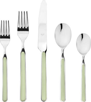 The Fantasia Collection from Mepra is the perfect combination of color and sophistication. Elevate your dining experience with our Italian-crafted flatware, skillfully made from top-tier 18/10 stainless steel and resilient Nylon-Fiberglass resin. Timeless in design, these pieces feature a colorful and elegant form. With a seamless construction, the Stainless Steel body extends to the handle's end, ensuring durability. The knives are enhanced with double serration for enduring sharpness and the entire set is dishwasher safe and backed by a lifetime warranty on the handle. Discover a perfect balance of aesthetics and functionality that's not only long-lasting but also food-safe and stylish.