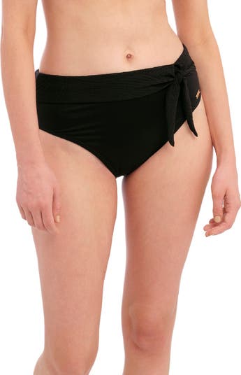 These full-coverage bikini bottoms with a high waist and flirty ties offer a comfortable, flattering fit, while the swirly jacquard trim adds subtle textural interest.