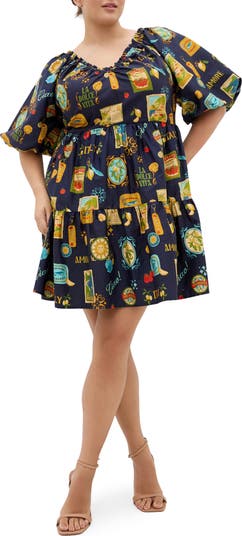 Billowy elbow-length sleeves bring soft volume to this tiered Amalfi-print minidress made from lightweight cotton and fashioned with a smocked back for a flexible fit.