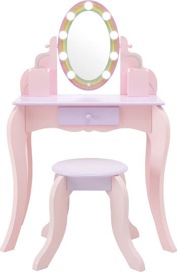 Your kid will love storing their favorite makeup and hair products in this princess-worthy vanity set featuring a spacious table with an oval light-up mirror.