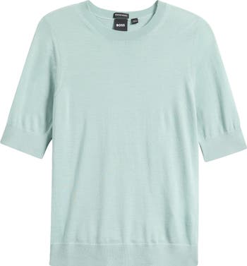 Rich wool yarns naturally manage moisture and promote breathability in this short-sleeved sweater made in a fine-gauge knit.