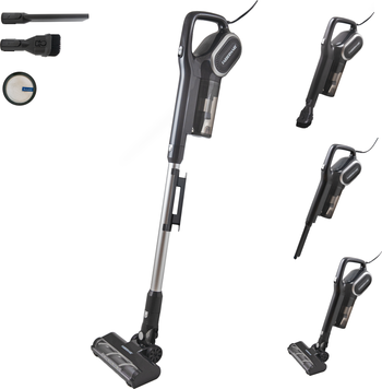 - MULTI-PURPOSE – Farberware’s Corded Stick Vacuum tackles tough messes on hardwood, rugs, carpet and everything in between. With flat nozzle and dust brush attachments, you’re equipped to clean messes on almost any surface. The Farberware vacuum converts from a stick length to a handheld option allowing you to clean high and low.