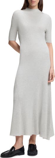 Chunky-knit wool construction and multidirecitonal ribbing emphasizes the cozy sweater inspiration behind this figure-skimming maxi that flares out around the thighs.
