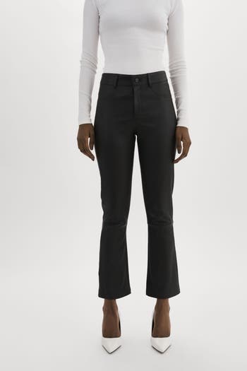 Step into modern elegance with the Faris Stretch Leather Cropped Pants – a must-have for your wardrobe. Crafted from high-quality stretch leather, these pants offer a luxurious feel and a flattering fit. The cropped length adds a contemporary twist, allowing you to showcase your favorite footwear. With a tailored waistband and concealed closure, FARIS effortlessly transitions from casual to upscale occasions.