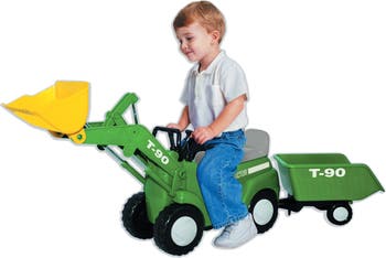 Your little one will have a ball with this free wheeling farm tractor and trailer with battery operated scoop.