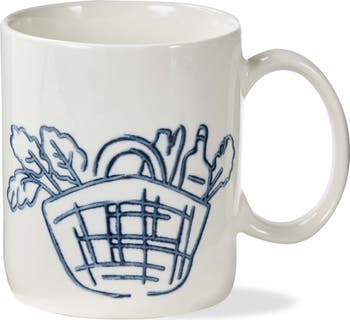 embrace the spirit of the farmers market with the farmers market mug. crafted from durable stoneware, this mug features a vibrant blue hand-stamped design reminiscent of a bustling market.