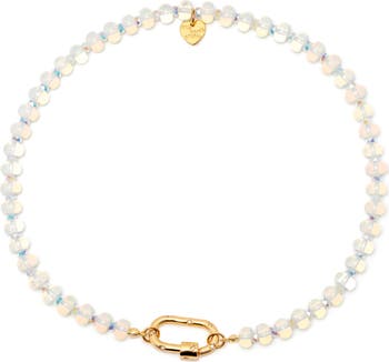 A crystal-accented closure doubles as the pendant of this playful beaded necklace. Each necklace comes with a tag inscribed with a registration code that can be used to register your item on the Little Words Project app or website, inducting you into the Nice Nation, a community dedicated to building each other up.