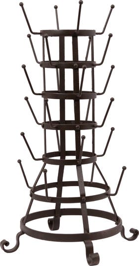 - This vintage-inspired bottle or mug holder features sturdy iron construction with elegant detail and twenty-four hooks
