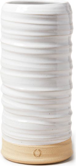 The organic shape and textured rings of this vase are inspired by trees in a Vermont forest where this intriguing vase was wheelthrown of durable stoneware.