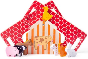 All the fun of the farm! Our lovely Farmhouse Shape Sorter comes with 8 vibrant farm animals and of course, the wooden farm. Tots will enjoy matching each animal to its uniquely shaped slot on the wall of the farmhouse.When all the animals are safely inside, the roof can be removed and the animals lifted or poured out for one more game! This Shape Sorter Toy is a great way to develop little one's dexterity and fine motor skills. The useful wooden carry handle makes this the ideal travel toy, too!Our Farmhouse Wooden Shape Sorter is crafted from premium quality, sustainably sourced FSC® Certified wood and coated with child-friendly paints and lacquers. Conforms to current European safety standards.
