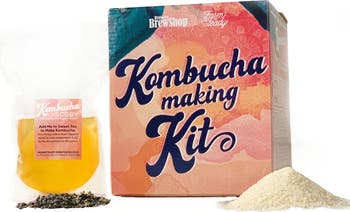 Brew green tea kombucha with this supremely giftable kit that includes a fermenting jar, cloth cover and band, liquid SCOBY culture, green tea and cane sugar. Just brew a batch of sweet tea, add the symbiotic colony of bacteria and yeast (SCOBY), and wait a little over a week for the probiotic benefits to kick in.