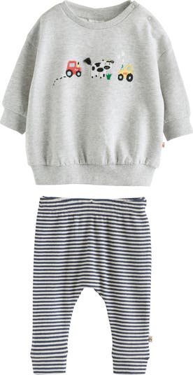 Your little one will be cute and cozy in this soft cotton sweatshirt that's embroidered with farmyard friends and paired with coordinating stripe leggings.