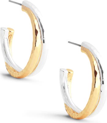 A mix of hammered 18-karat gold plate and shining sterling silver brings endless wearability and shine to these sculptural hoop earrings that are sure to be a treasured gift.