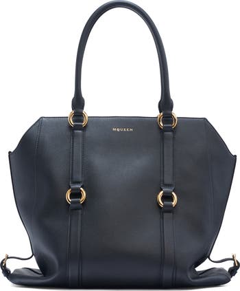 Debuting on McQueen's fall '25 runway, this capacious tote made in a tall silhouette from finely grained leather is named for the historic location of the label's design studio and atelier. It features buckle straps at the sides to adjust the capacity, and is topped with ring-secured straps inspired by the house's iconic harness detail.
