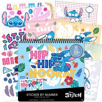FASHION ANGELS: DISNEY STITCH STICKER BY NUMBER PORTFOLIO - The Disney Stitch Sticker Activity Book offers a fun, creative way for kids to engage with their favorite character through sticker-by-number sheets. Perfect for beginners, the set includes 10 sheets where kids can match the numbers to the stickers provided, or create their own unique designs. With over 250 stickers, this book boosts creativity and artistic skills, allowing kids to build different Stitch scenes and styles. Ideal for Disney Stitch fans, it makes a great gift for birthdays, holidays, or road trips. CUSTOMIZE PERSONAL ITEMS: Design, color and accessorize anywhere. The spiral-bound book is portable and easy to carry in a tote bag or backpack, perfect for travel or sleepovers. Spiral-bound book measures 10.5" x 0.65" x 9.5". As an officially licensed Disney merchandise, its authenticity is unquestionable. The perfect craft activity for the Disney Stitch super fan! These crafts make the sweetest gifts! Surprise your kids with gifts and crafts they'll fall in love with. CONTENTS INCLUDE: 10 Posters, 2 Puffy Sticker Sheets, and 8 Glossy Sticker Sheets.