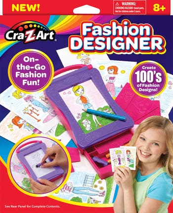 Let your little fashionista draw her own stunning outfits with this Cra-Z-Art Fashion Designer Kit! Insert plates into the design deck, place a piece of paper over the top of it, and rub the crayon on the paper so the outline of the outfit appears. Next, your little ones can use the included colored pencils to add life to their art. If your daughter loves fashion, she's sure to love this portable fashion designer art kit! Designed for ages 4 years of age and up. WARNING: CHOKING HAZARD -- Small parts. Not for children under 3 yrs.