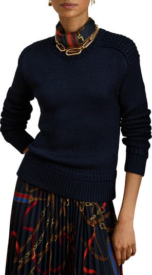 Textured shoulder detailing and a rich knit finish elevate this cotton-blend sweater perfect for layer-ready refinement.