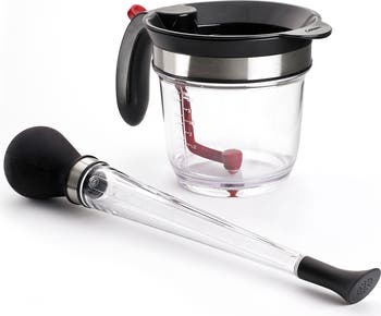 This Cuisipro fat separator & 3-in-1 baster set is the ultimate roasting companion set. Use the Cuisipro Fat Separator to make healthier sauces by eliminating the fat but keeping the flavor. The Fat Separators Easy Drain feature easily and conveniently separates the fat from the sauce with no effort. The 3 in 1 baster is BPA free, durable and versatile, making it the only baster you'll need and want to use.
