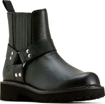 The label's iconic Western style goes moto in this harness Chelsea boot that adds biker attitude to the classic silhouette that moves from chorin' to the honky-tonk with ease.