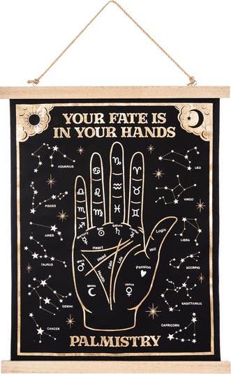 - Featuring intricate palmistry lines, astrology signs, and constellation details, this art banner blends timeless mysticism with modern style. Its detailed hand chart and celestial imagery spark curiosity and conversation in any room.