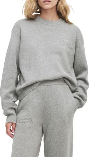 An embossed tonal logo makes a subtle statement on a cashmere-softened cotton sweatshirt that's a refined weekend style essential.
