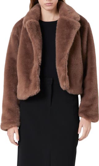 Elevate your outerwear portfolio with the luxe style of a faux-fur coat secured with a gleaming goldtone button.