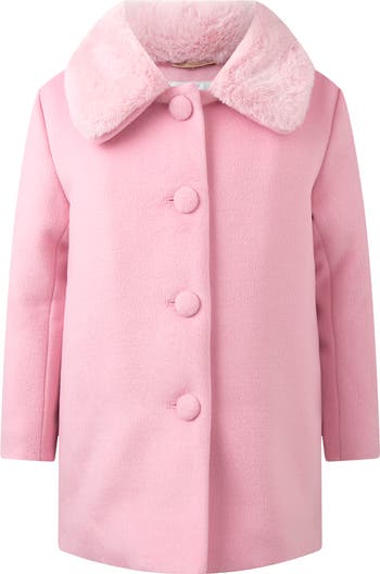 Upgrade your child's wardrobe with our chic Faux Fur Collar Coat in a stylish baby pink tone. Complete with matching covered buttons and a luxurious faux fur collar, this coat is a fashionable essential. Perfect for those fashion-savvy kids who want to make a statement!