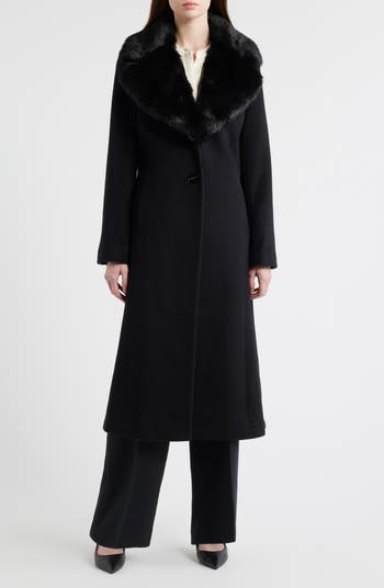 A sumptuous faux-fur collar and softly tailored silhouette lend polish to your cold-weather ensembles in this longline coat cut from a rich wool blend.