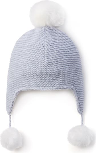 A supersoft fleece lining adds warmth to this cotton-knit beanie with playful pompom details.