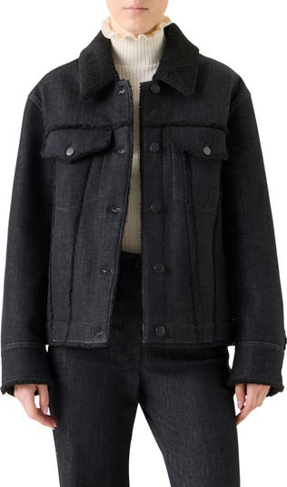 Akris punto Faux Fur Lined Denim Trucker Jacket, Alternate, color, Black Denim-Black