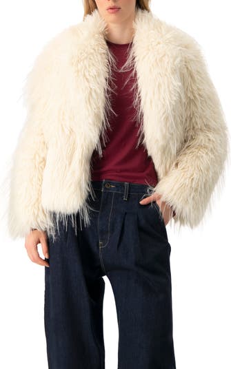 Soft plush faux-fur coat with a lapel collar for a cozy and stylish look.