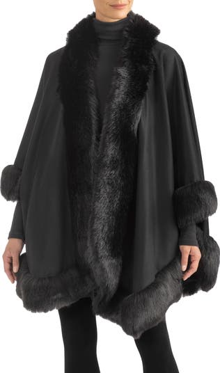 Make a stunning statement in this chic wrap made from sumptuous cashmere finished with plush faux-fur trim that adds luxurious warmth.