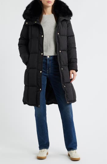Stay warm in this quilted puffer coat styled with a detachable faux-fur collar and a removable belt for a customizable fit.