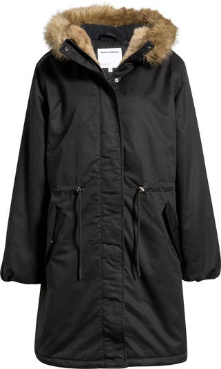 Take on wintry weather confident in the comfort, warmth and street-smart style of this long parka topped with a faux-fur-trimmed hood.