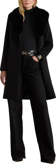 Lauren Ralph Lauren Faux Fur Trim Reefer Jacket, Main, color, Black