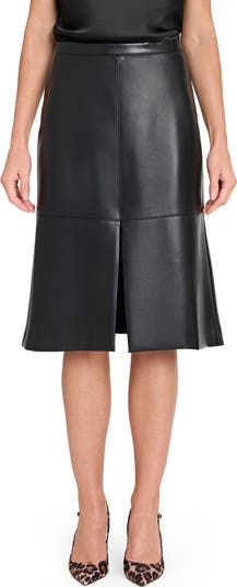 Sleek faux leather updates this desk-to-dinner skirt made in a timeless A-line silhouette.