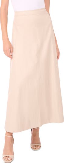 Supple faux leather brings edgy swagger to an A-line skirt cut to an ankle-skimming length.