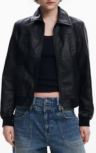 Layer up your look with the timelessly chic style of a faux-leather jacket in a relaxed silhouette.