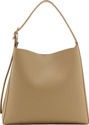 A spacious interior and removable zip pouch bring easy organization to a softly structured bucket bag shaped from sleek faux leather and fitted with an adjustable shoulder strap.