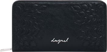 Floral debossing brings subtle whimsy to this faux-leather zip wallet organized with an array of pockets perfect for storing your cards, cash and coins.