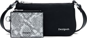 Glinting logo hardware highlights the 90's-inspired profile of a structured crossbody bag featuring a removable zip pouch and optional straps for on-the-go convenience.