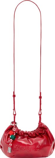 Bold logo embossing and colorful charms highlight the slim profile of a faux-leather wallet featuring convenient pockets and an optional crossbody strap for hands-free carry.