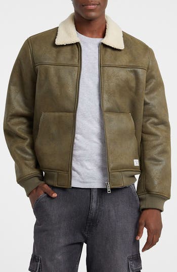 Faux Leather & Faux Shearling Bomber Jacket