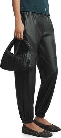 Go everywhere in these comfy elastic-waist joggers textured in faux leather for a sleek update.