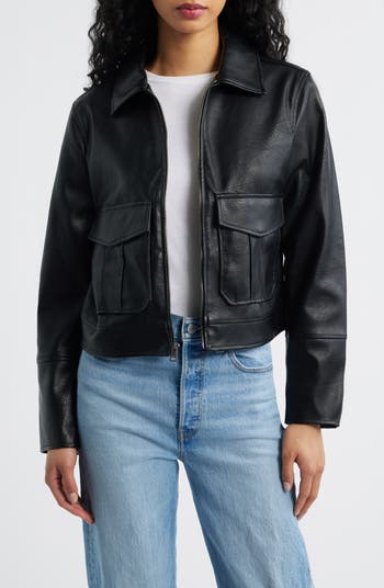 This faux-leather jacket is all about the details like convenient flap pockets and zip cuffs that drive up the moto-inspired edge.