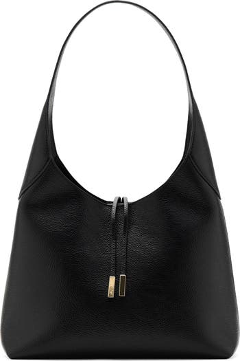Swinging tassels bring subtle movement to this streamlined faux-leather shoulder bag designed to carry daily essentials.