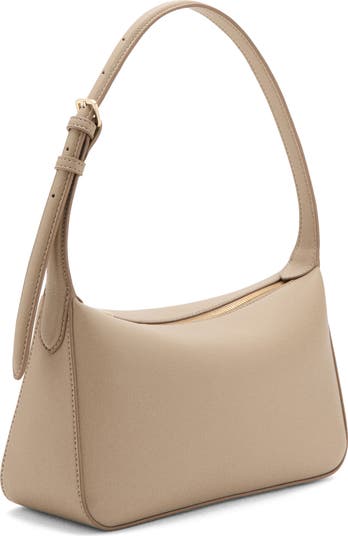 Golden hardware accents this sleek shoulder bag updated in faux leather.