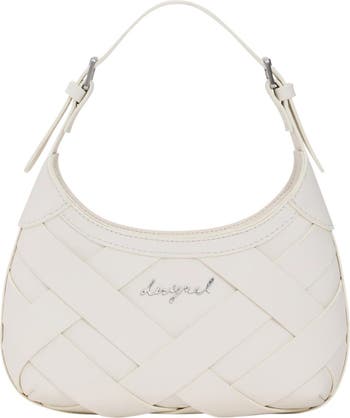 Signature logo hardware and woven faux-leather panels add captivating dimension to a '90s-inspired shoulder bag featuring a pair of optional straps that adjust for shoulder or crossbody wear.