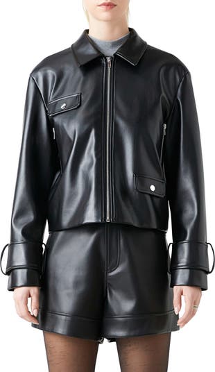 Grey Lab Faux Leather Zip Crop Jacket, Alternate, color, Black